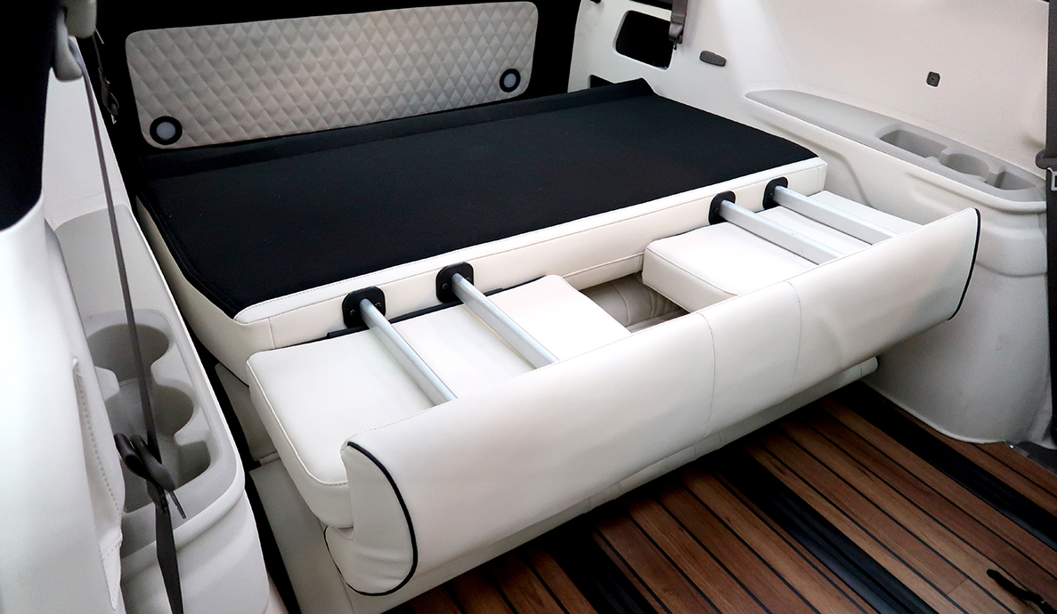 업계 최고의 성능을 자랑하는 스타리무진의 3열 차박 시트는 주행중의 안정성과 평탄화를 모두 만족시키는 뛰어난 제품입니다.